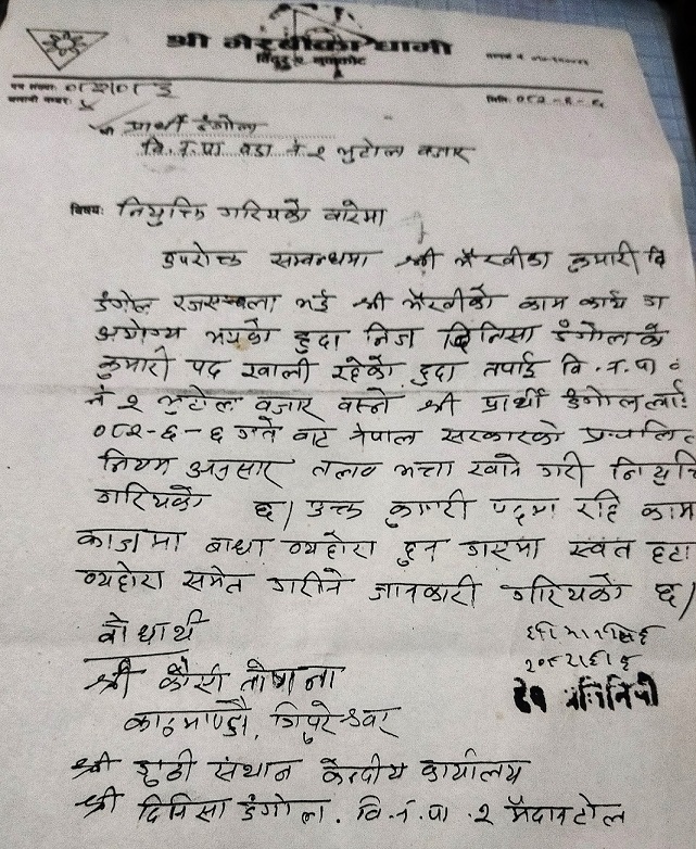 कुमारी नियुक्तिको बोधार्थ कौसी तोषाखाना काठमाडौँ, त्रिपुरेश्वर, गुठी संस्थान केन्द्रीय कार्यालय र यसभन्दा अघिल्ली कुमारी दिनिसालाई दिइएको छ । बडादसैँको घटस्थापनादेखि विजयादशमीसम्म र सिन्दुरेजात्राका लागि कुमारी आवश्यक हुने गरेको छ । भैरवी मन्दिरका पुजारी धामीधमिनीका अनुपस्थितिमा कुमारीले भैरवीको नित्य पूजापाठ गर्ने चलन छ ।