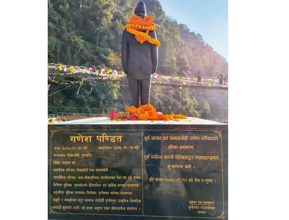 समुन्द्रटार । राजनीतिकर्मी, शिक्षाविद्, समाजसेवी एवं धार्मिक तथा संस्कृतिक सम्पदा संरक्षणको अगुवाइ गर्नुभएका गणेश पण्डितका नाममा निर्मित गणेश पण्डित स्मृति उद्यान उद्घाटन भएको छ । दुप्चेश्वर मन्दिर परिसरमा पण्डितको पूर्ण कदको सालिक पनि निर्माण भएको छ । उहाँले दुुग्धेश्वरलाई वातावरणीय दृष्टिले समेत स्वच्छ एवं मन्दिर परिसरलाई सफा राख्न तथा दर्शनार्थीलाई स्नान गर्नसमेत सहज होस् भन्ने हेतुले सूर्यमती नदीको संरक्षणका लागि भएको सङ्घर्षको पनि नेतृत्व गर्नुभएको थियो ।