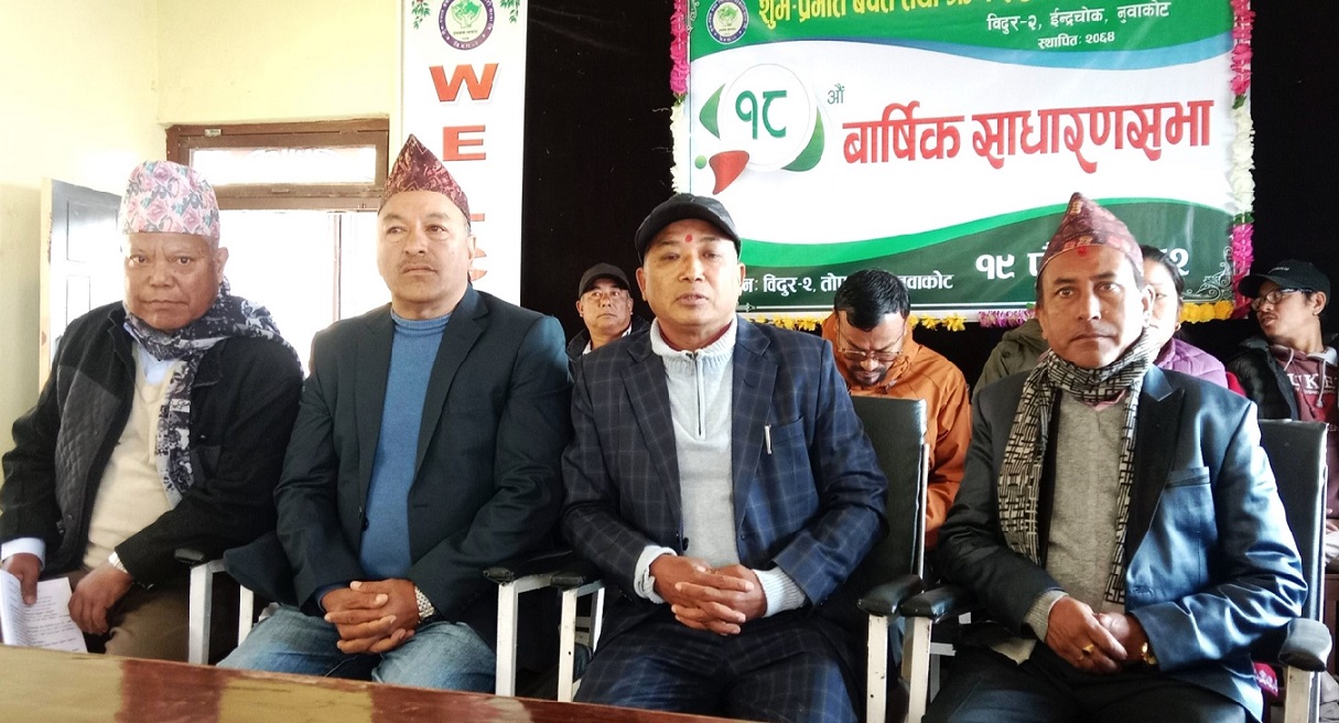 विदुर । विदुर-२, इन्द्रचोकस्थित शुभप्रभात बचत तथा ऋण सहकारी संस्था लिमिटेडको १८औँ वार्षिक साधारणसभा शनिबार सम्पन्न भएको छ । साधारणसभामा सहकारीको वार्षिक प्रगति प्रतिवेदन प्रस्तुत गर्दै अध्यक्ष महेन्द्रलाल श्रेष्ठले देशमा बढ्दै गएको आर्थिक मन्दी र विभिन्न किसिमको आन्दोलनले व्यापार-व्यवसायमा आर्थिक सङ्कट देखिए पनि सहकारीले गत वर्षझैँ मुनाफा वितरणमा निरन्तरता दिन सकेको बताउनुभयो । उहाँले दुई हजार पाँच सयबाट सुरु गरेको संस्थाको सेयर पुँजी विसं २०८२ असार मसान्तसम्म दुई करोड एक लाख ८९ हजार तीन सय पुगेको बताउनुभयो ।