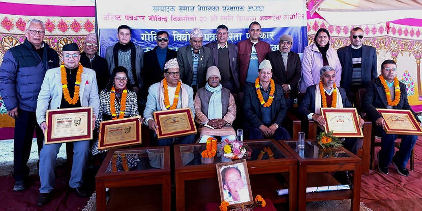 सुइरेचौर । सम्पादक समाज नेपालले संस्थापक अध्यक्ष एवम् वरिष्ठ पत्रकार गोविन्द वियोगीको स्मरणमा शनिबार विभिन्न अग्रज तथा सक्रिय पत्रकारलाई सम्मानित...